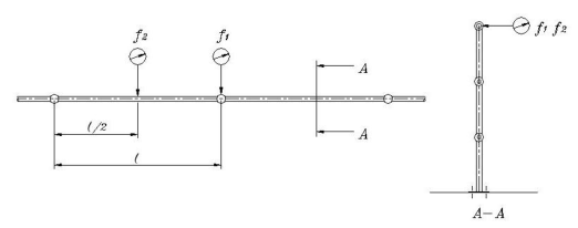 2 通過如(圖一) 所示水平定位的測偏移表測量沿中心線產(chǎn)生的偏移量(f 1 , f 2 )。